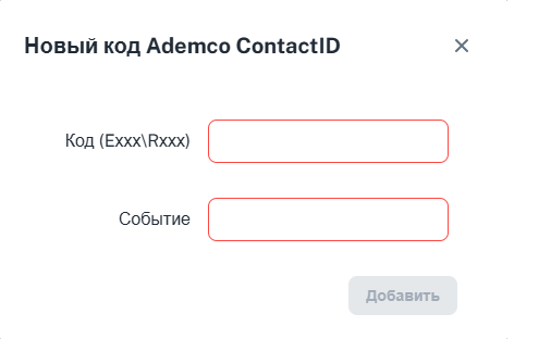 4. Нажмите Добавить. Новый код Ademco добавлен в список кодов для шаблона трансляции.