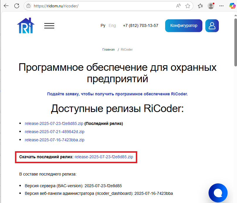1. Скачайте актуальный релиз RiCoder c официального сайта ridom.ru.