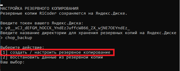 Для организации резервного копирования RiCoder на Яндекс.Диск необходимо: