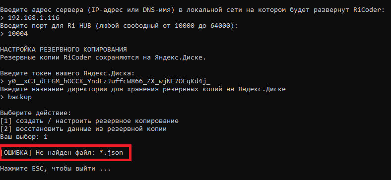 Мастер установки не может найти файл ключа авторизации (*.json) для подключения к репозиторию Docker-контейнеров Яндекс.