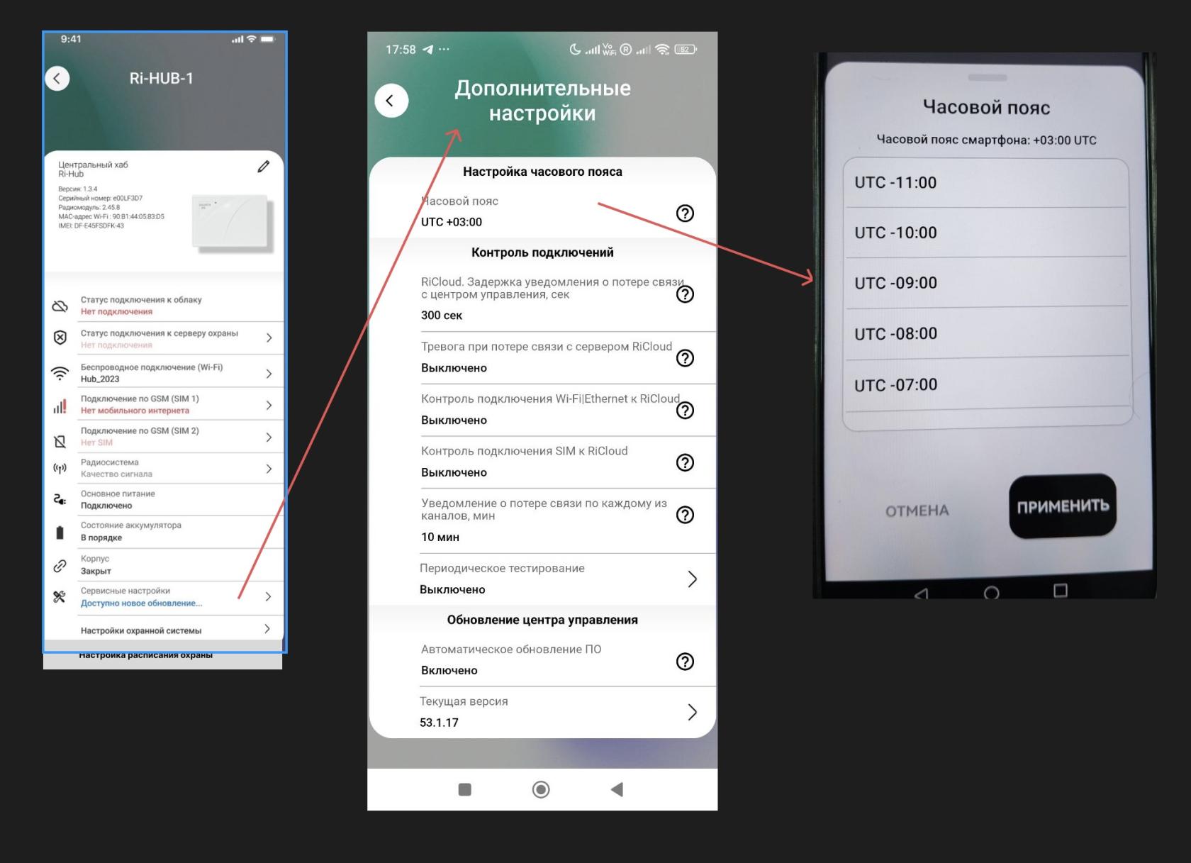 Сменить часовой пояс у контроллера можно только тогда, когда он на связи – есть интернет и подключен к облачному серверу RiCloud.