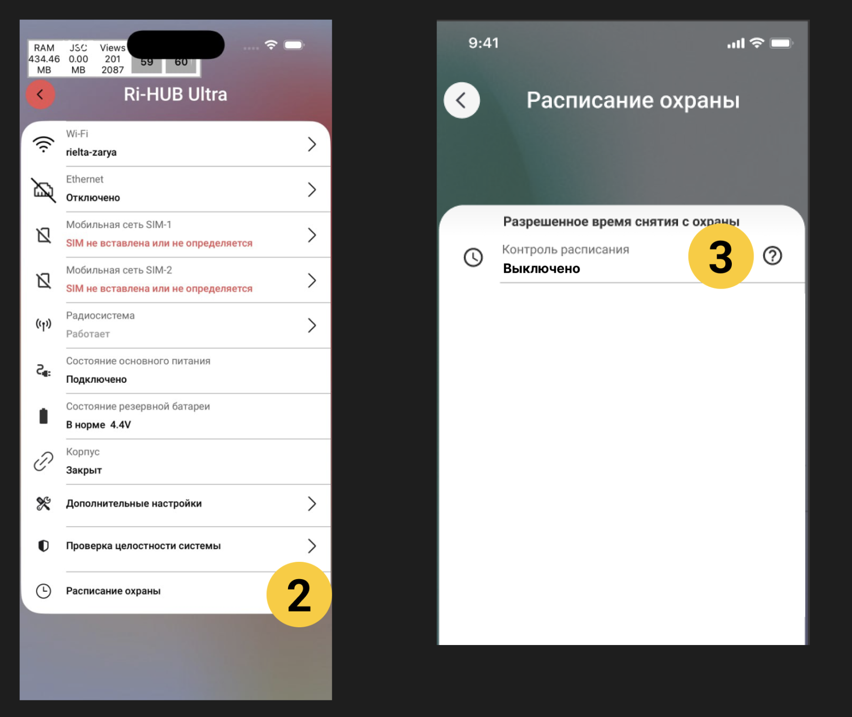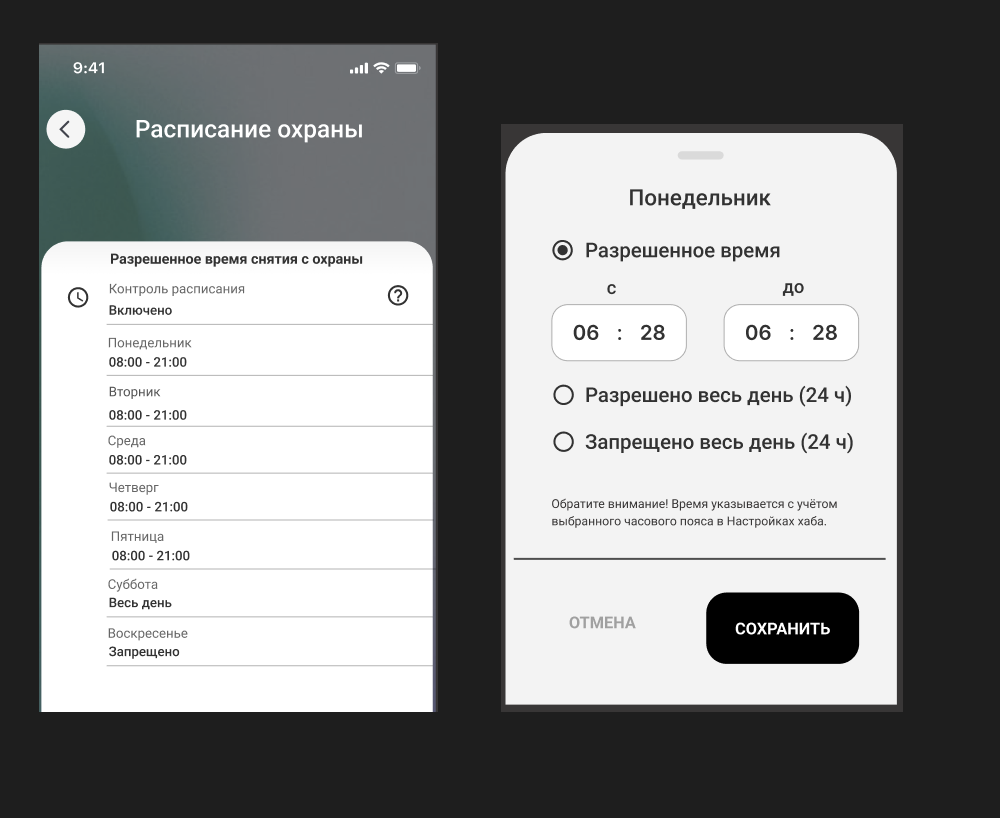 Расписание не распространяется на снятие с дома/объекта с охраны через мобильное приложение.